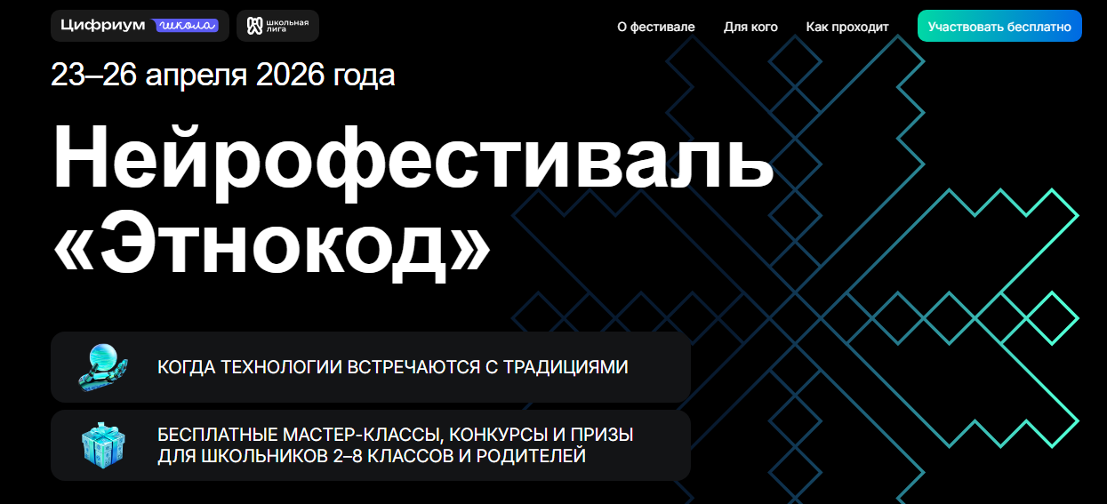 Общество с ограниченной ответственностью «Цифровое образование», совместно с Автономной некоммерческой просветительской организацией в области естествознания и высоких технологий «Школьная лига», запускает семейный нейрофестиваль «Этнокод».