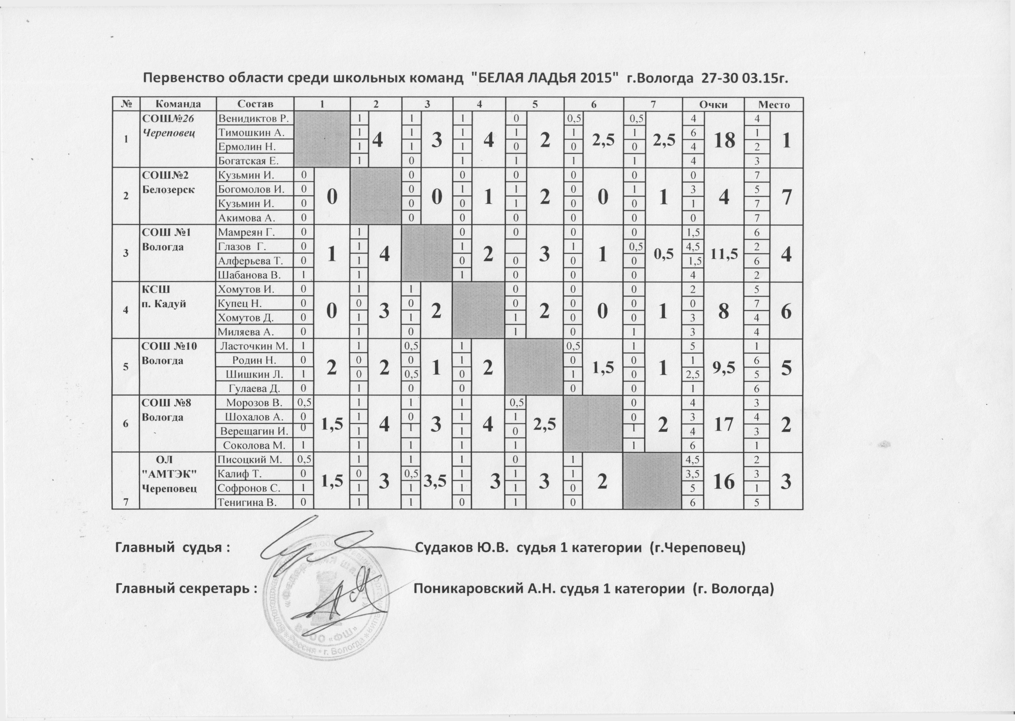 Областной этап Всероссийских соревнований среди команд общеобразовательных учреждений по шахматам «Белая ладья» прошел 27-30 марта 2015 года в г. Вологда на базе Шахматной школы (адрес: ул. Кирова, д. 15).