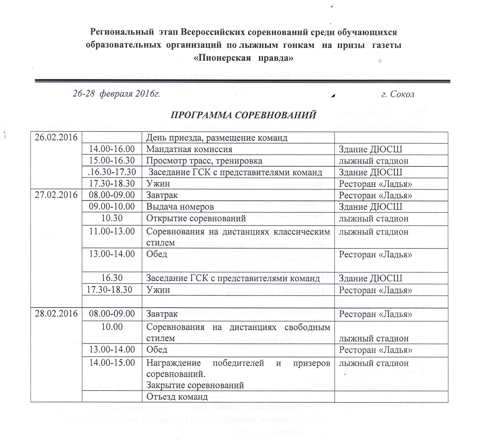 26 - 28 февраля 2016 года в г. Соколе состоятся Всероссийские соревнования среди обучающихся образовательных организаций Вологодской области по лыжным гонкам на призы газеты «Пионерская правда».