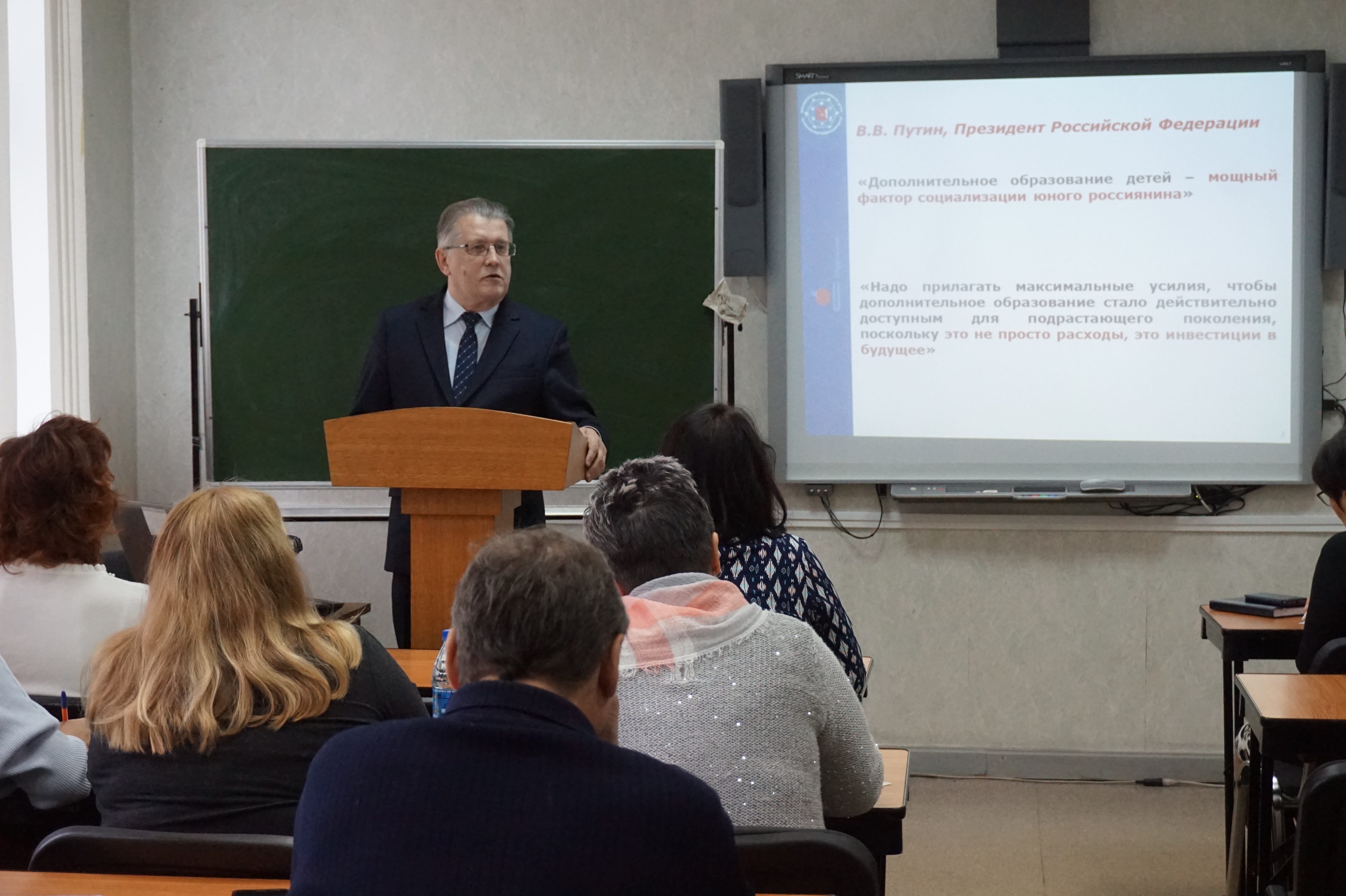 В рамках Соглашения о сотрудничестве между Вологодским институтом развития образования и Региональным центром дополнительного образования детей Николай Михайлович в своем выступлении остановился на нормативно-правовом регулировании дополнительного образования детей. Подробно рассказал коллегам, проходящим курсы повышения квалификации, о стоящих перед педагогами дополнительного образования задачах по реализации регионального проекта «Успех каждого ребенка».