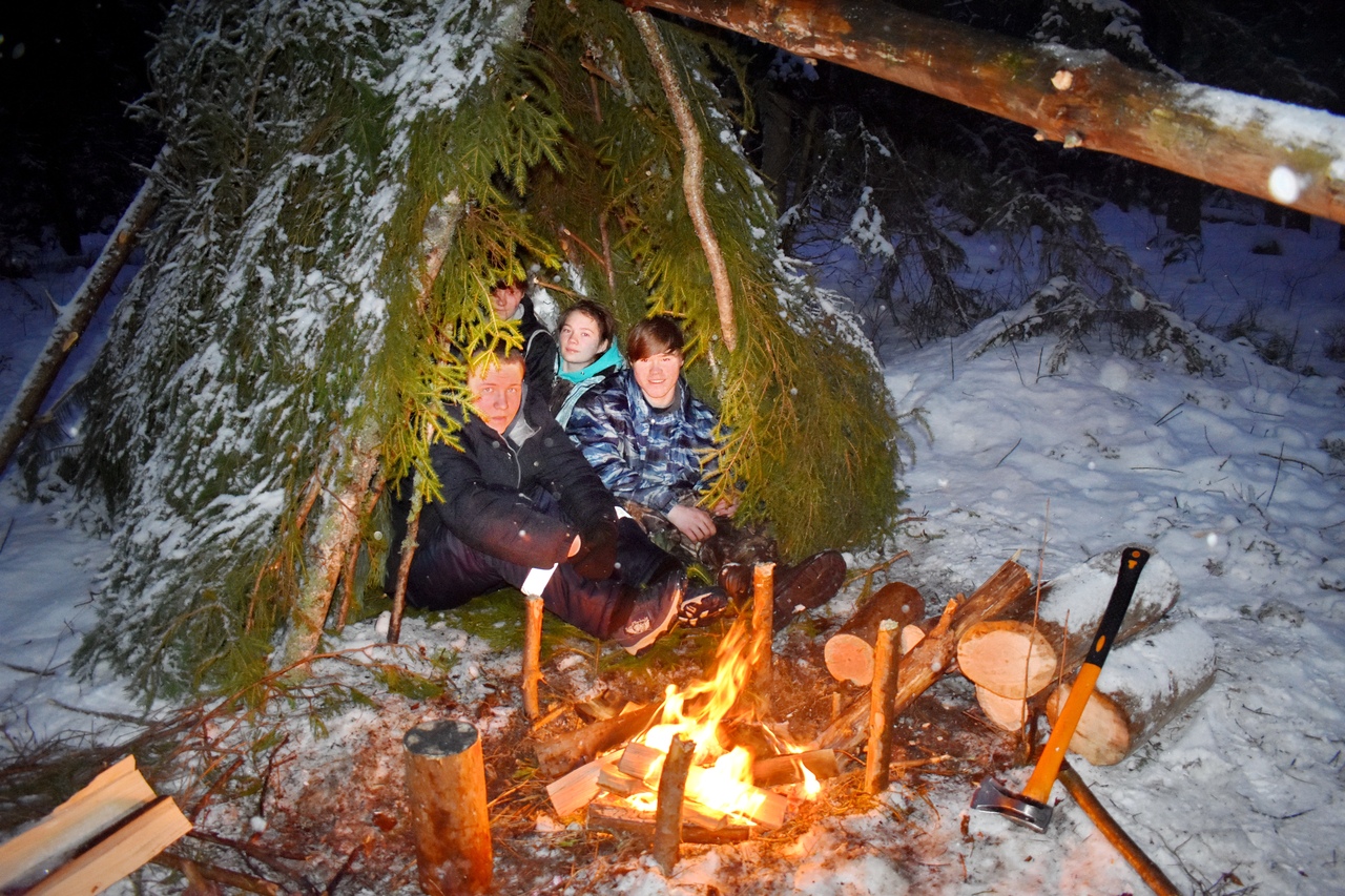 Сотрудники Регионального центра дополнительного образования детей провели для ребят познавательные и очень полезные для жизни в полевых условиях мастер-классы по строительству временных убежищ и разведению огня зимой.