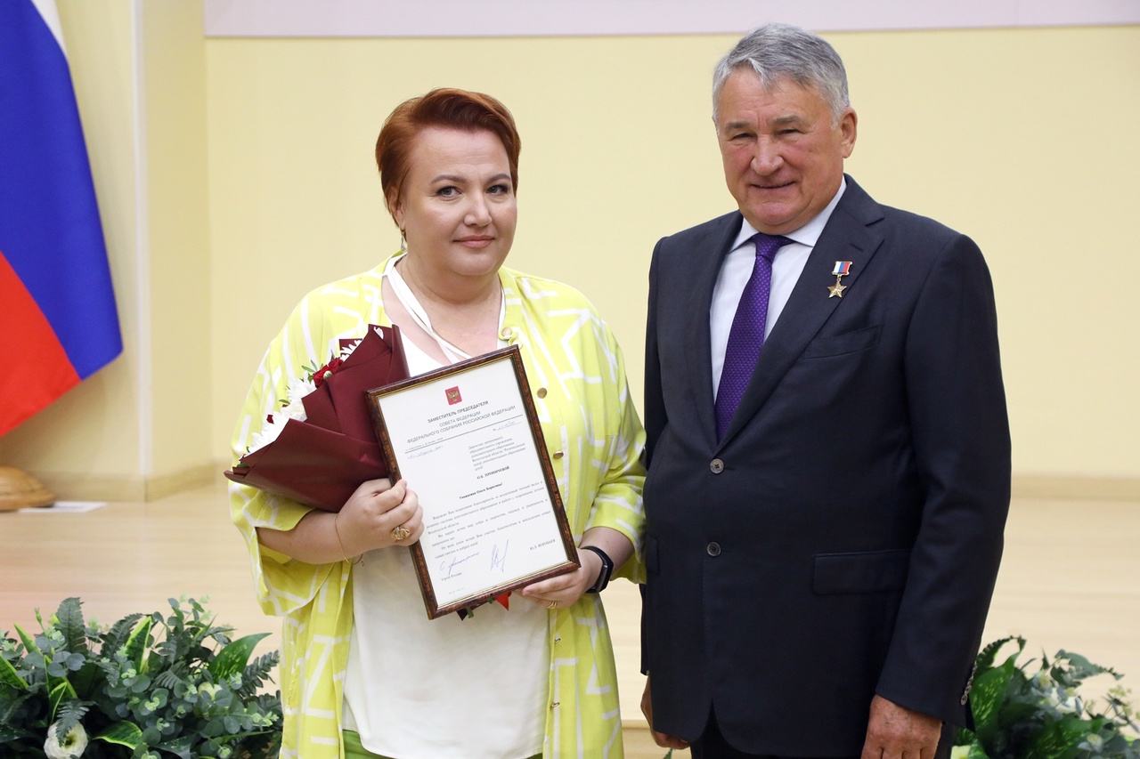 "За неоценимый личный вклад в развитие системы дополнительного образования и работу с одаренными детьми" Благодарность председателя Совета Федерации Федерального Собрания Российской Федерации объявлена Ольге Борисовне Проничевой, директору АОУ ДО ВО "Региональный центр дополнительного образования детей".