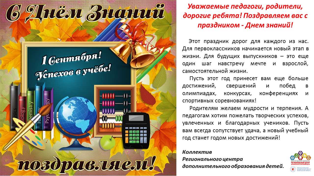 Уважаемые коллеги, поздравляем вас с праздником - с Днём знаний!