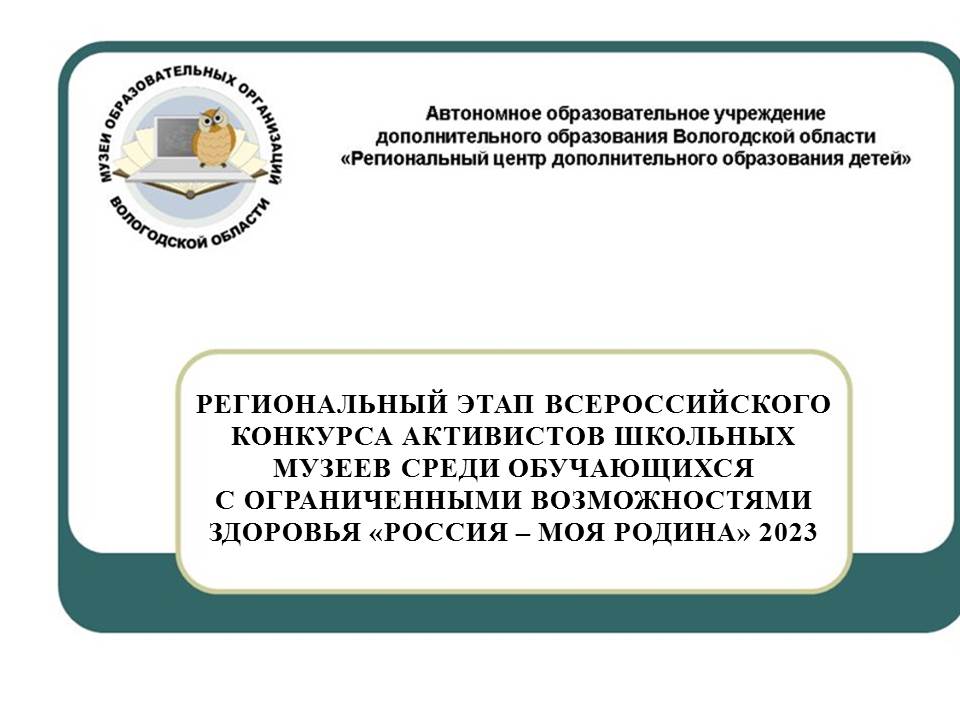 Уважаемые коллеги, обратите внимание! Региональный этап Всероссийского конкурса активистов школьных музеев среди обучающихся с ограниченными возможностями здоровья «Россия – моя Родина» пройдет с 1 февраля по 1 марта 2023 года.