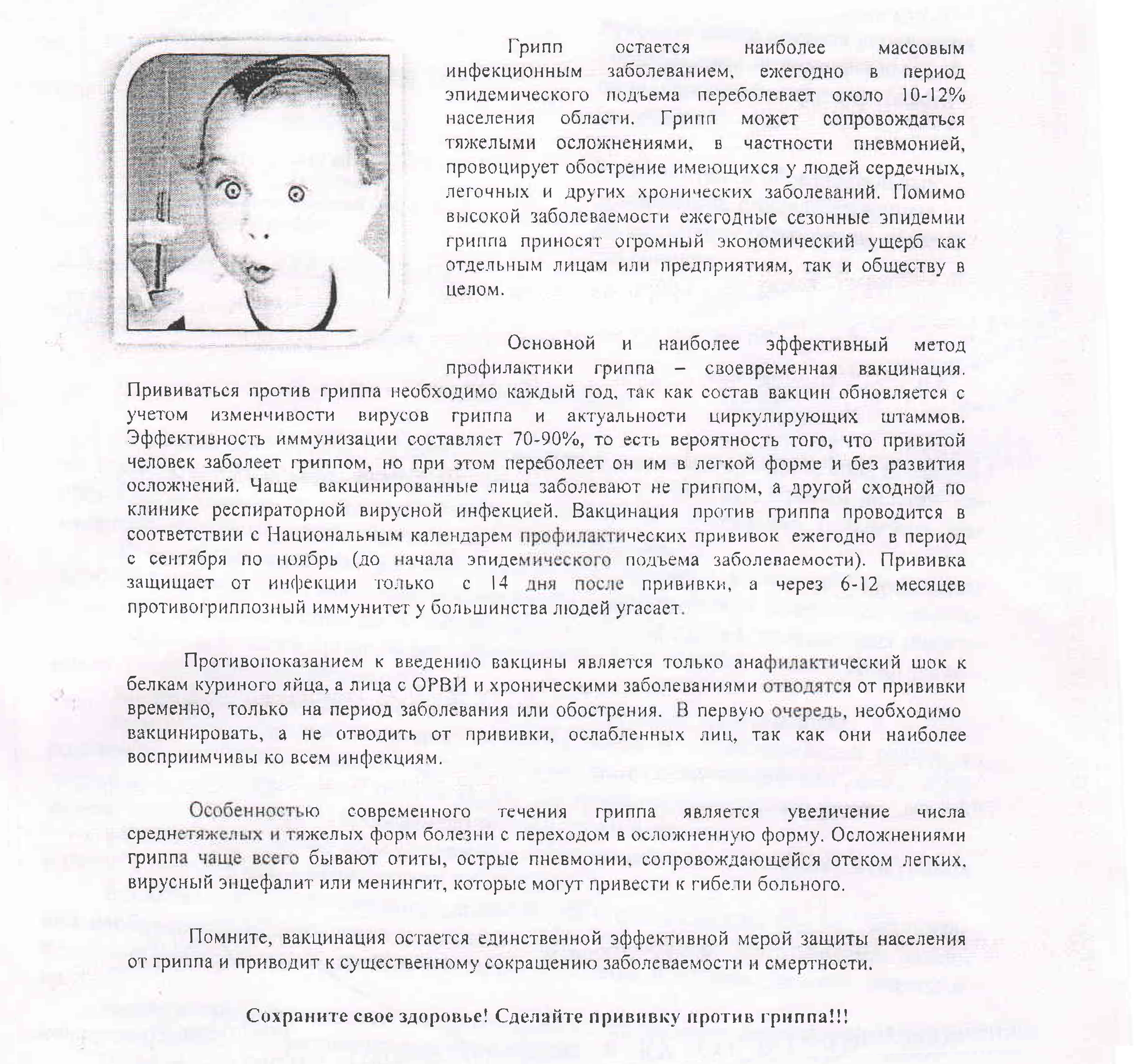 - Памятка по вакционопрофилактике гриппа