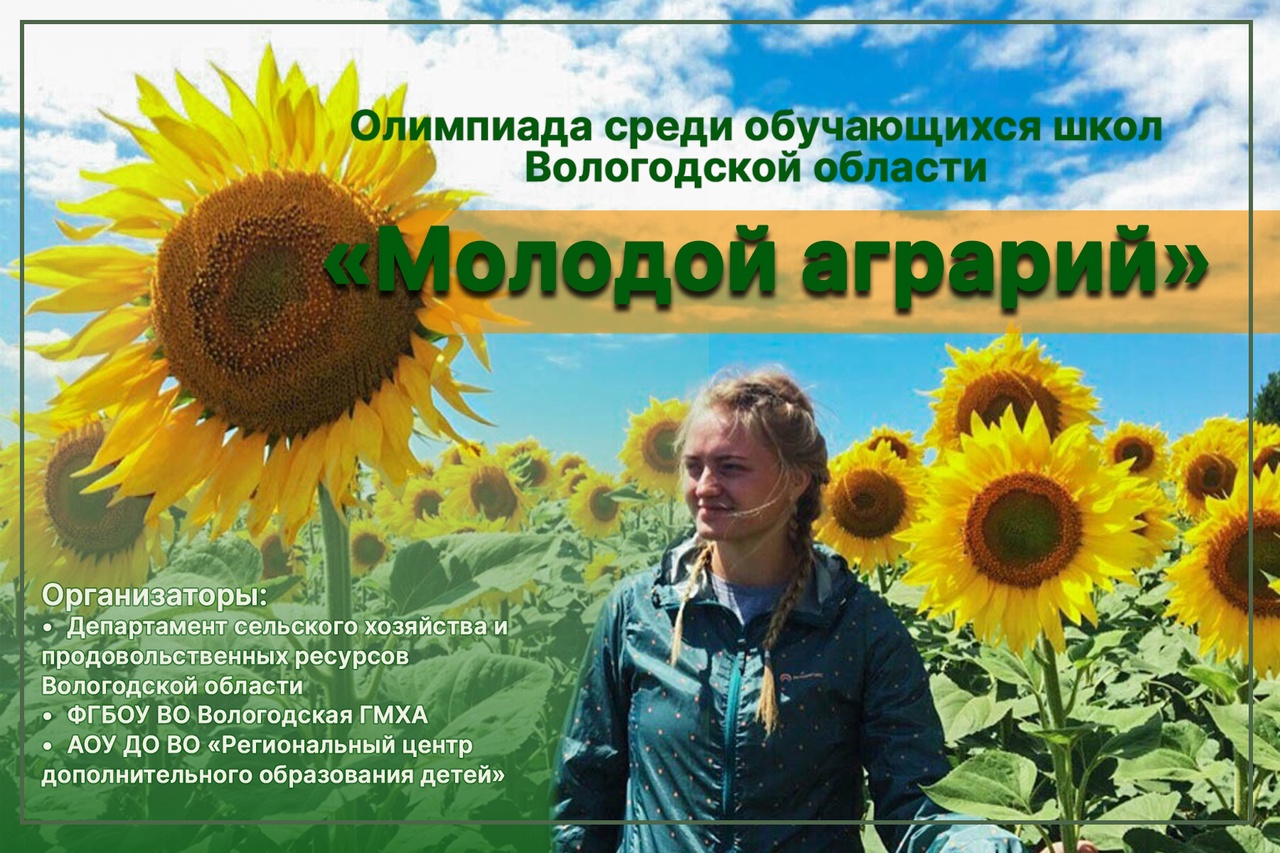 Внимание! В марте – апреле 2022 года пройдет Олимпиада среди обучающихся школ Вологодской области «Молодой аграрий». Олимпиада проводится с целью популяризации актуальных и перспективных профессий в области сельского хозяйства.