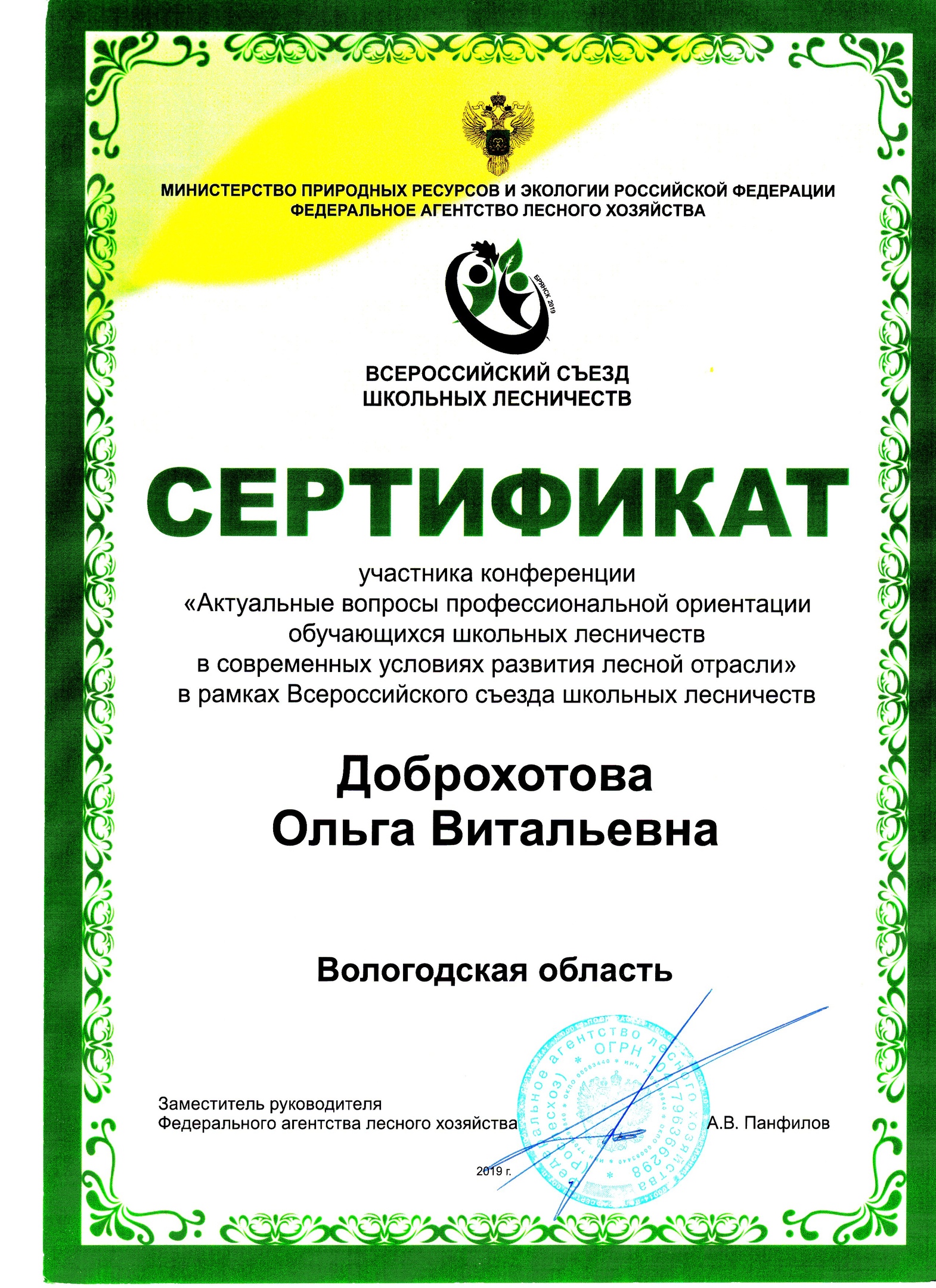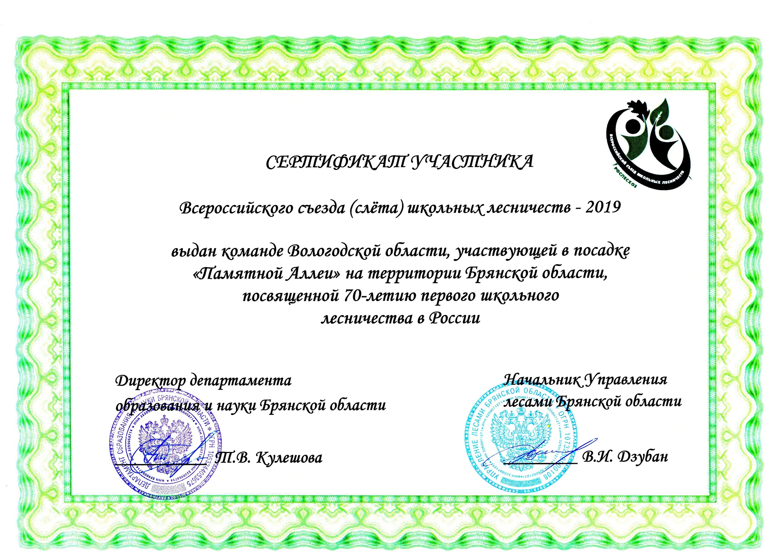 Вологодчину на Слете представляли члены школьного лесничества «Ковжа» - десятиклассники Ковжинской средней общеобразовательной школы Вытегорского района: Алена Гаврилюк, Анастасия Лобашева, Виктория Тихон. Вместе с юными лесничими в Слете принимала участие их педагог, руководитель школьного лесничества Ольга Витальевна Доброхотова.