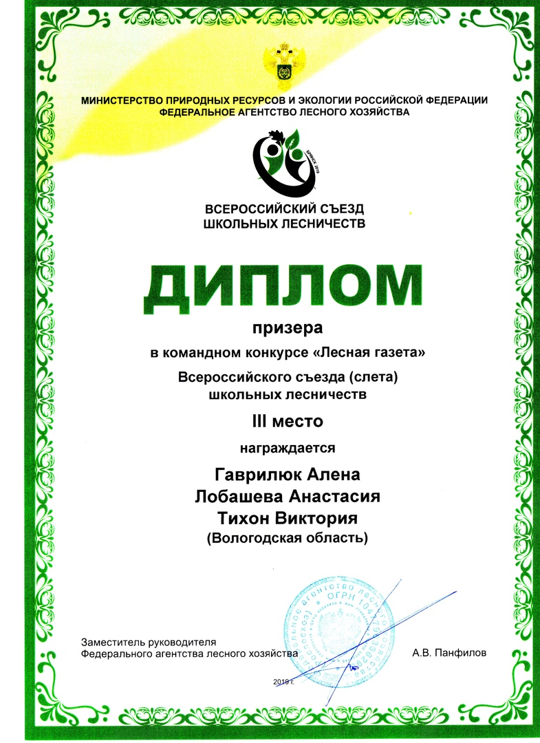 В командном конкурсе «Лесная газета» юные лесничие из Вологодской области завоевали 3 место. В общем зачете вологжане заняли 17-е место (из 56-ти команд). Анастасия Лобашева в конкурсе «Юные ботаники» стала 9-й (из 56-ти участников). Достойно выступили юные вытегоры и в конкурсах «Юные лесоводы» и «Юные зоологи».