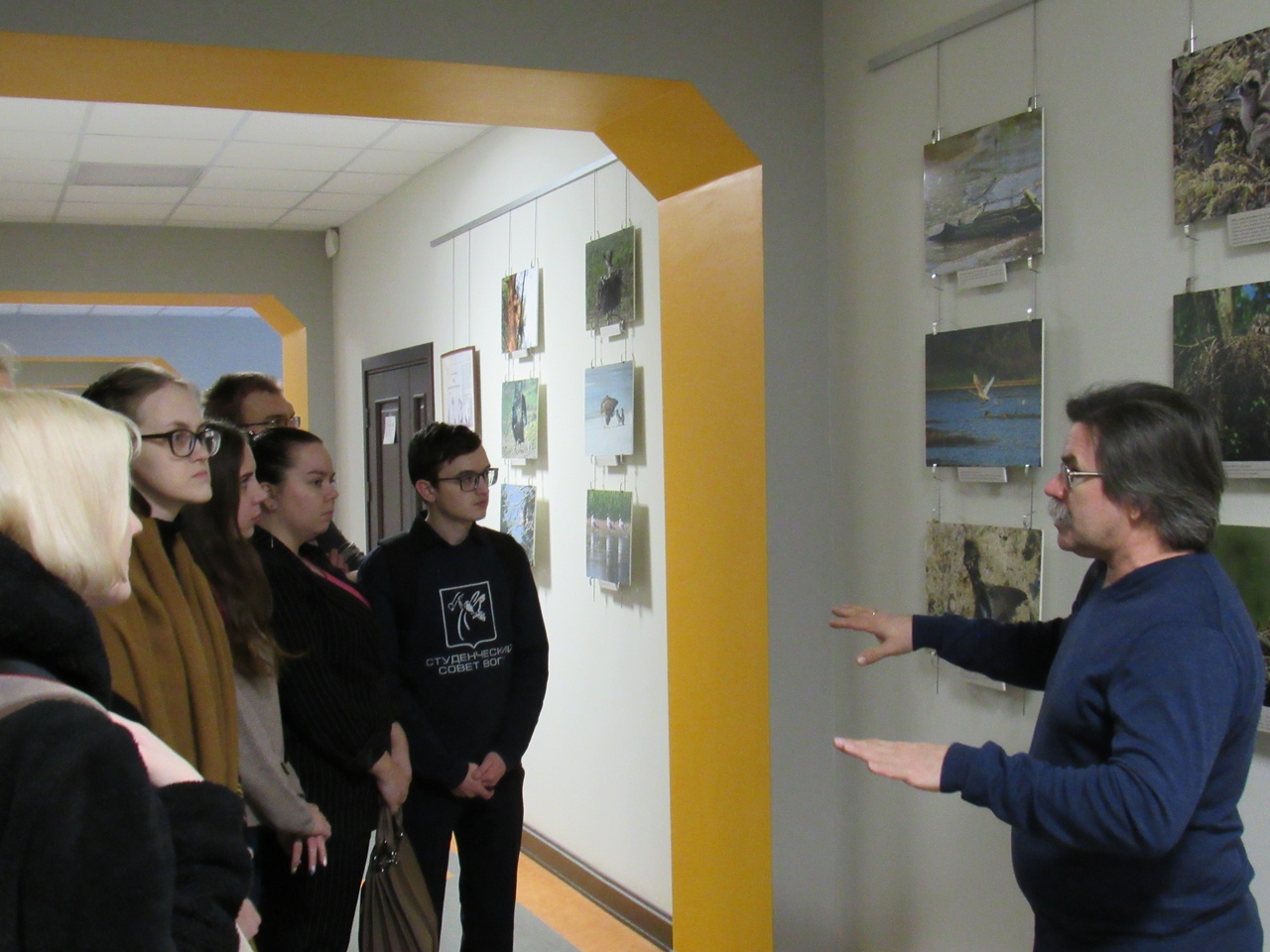 Выставка, рассказывающая об уникальной природе Дарвинского заповедника, работает в помещениях Регионального центра уже месяц. Фотоработы выполнены научными сотрудниками заповедника, фотографами – натуралистами. Познакомил с историей создания заповедника и рассказал студентам о флоре и фауне заповедного уголка Вологодчины Алексей Александрович Шабунов, кандидат биологических наук, доцент кафедры биологии и экологии ВоГУ.